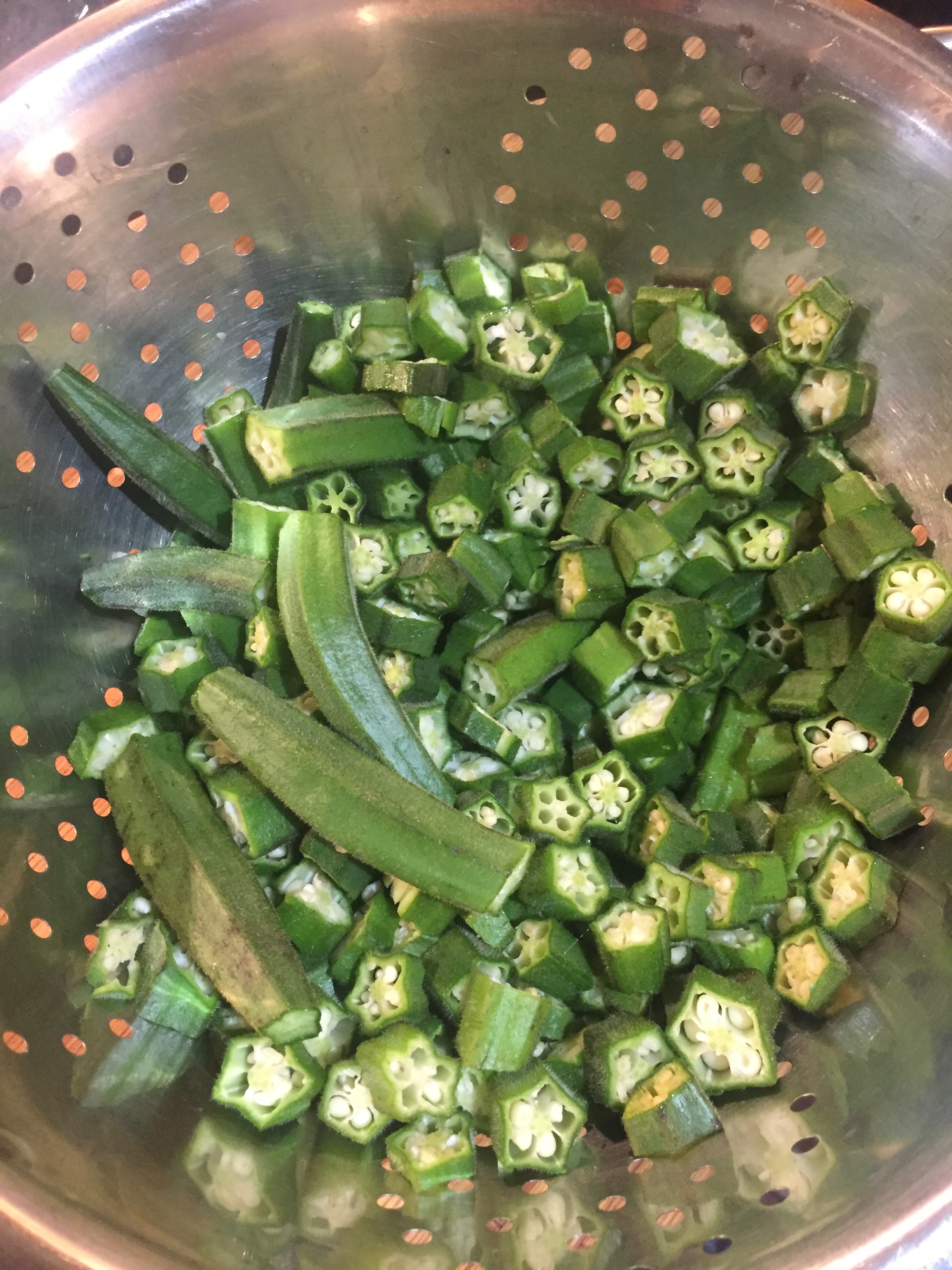 Moja szwagierka z Trynidadu (jak i większość gospodyni) lubi smażyć okrę ‚na chrupiąco’, ale wtedy wysmaża się całe dobro z warzywa, także ja smarzę na zielono.