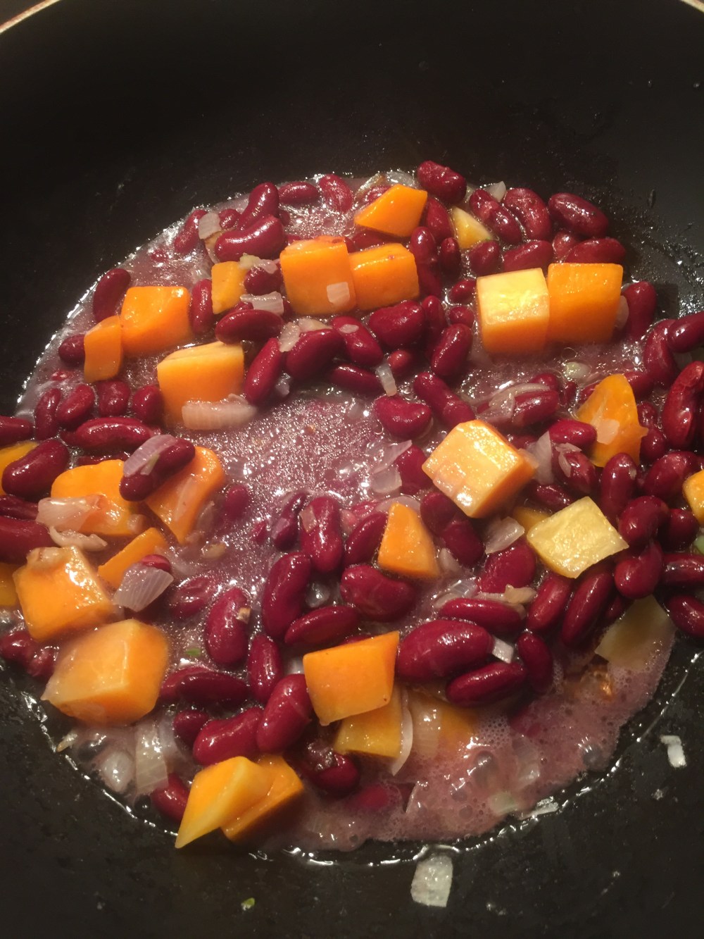 Sama przestałam jeść mięso jak miałam 11 lat, później mimo woli powróciłam do mięsożerstwa na dziesięć lat parę miesięcy po urodzeniu córki, jednak trzy lata temu znowu wróciłam do swojej wegetariańskiej natury, eliminując z diety także ryby i owoce morza. Z mięsożernymi dziećmi i mężem tzw. Flexitarianinem (je mięso tylko okazjonalnie, jeśli naprawdę ma na to ochotę) zawsze dla siebie gotuje coś roślinnego z wysoką zawartością białka, najczęściej rożnego rodzaju fasolę lub soczewicę.Tym razem zdecydowałam się na szybką czerwoną fasolę z dynią, pasującą doskonale do Ryżu Basmati i Callaloo, szczególnie że dynia pozostała mi z gotowania Callaloo. Potrawa nie wymaga żadnych wyjątkowych przypraw, mimo to ma typowo karaibski smak i konsystencję.