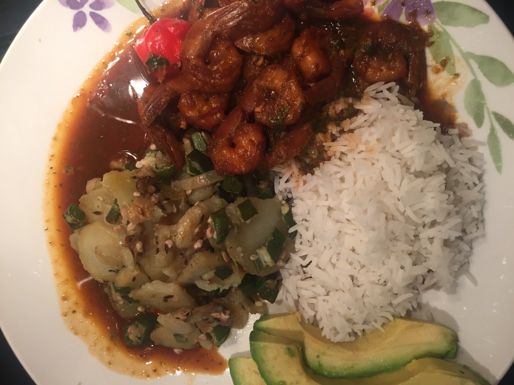 Proponuję podać z Brązowymi Krewetkami, z Roti lub z ryżem. Jak dla mnie jest to legendarna, sentymentalna potrawa dzięki której zakochałam się w kuchni karaibskiej. A mąż dalej czasem gotuje, ale sam przyznał że jego zdolności kulinarne zostały daleko w tyle w porównaniu z moimi. Zastanawiam się czy to tylko wymówka?