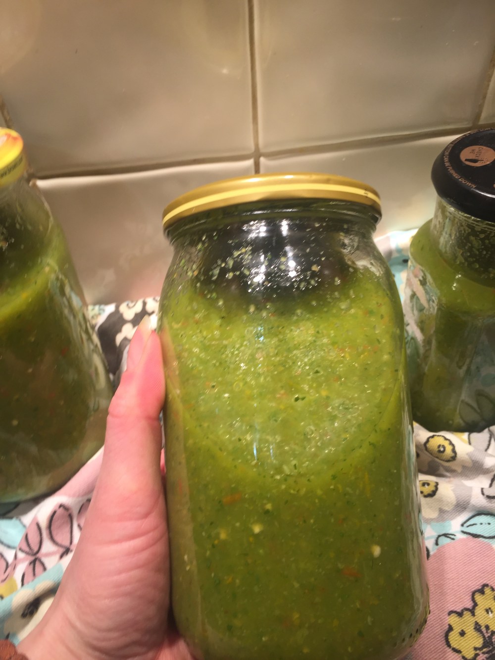 Sos wlewamy do słoików i śmiało można trzymać w lodowce przez pare miesięcy.